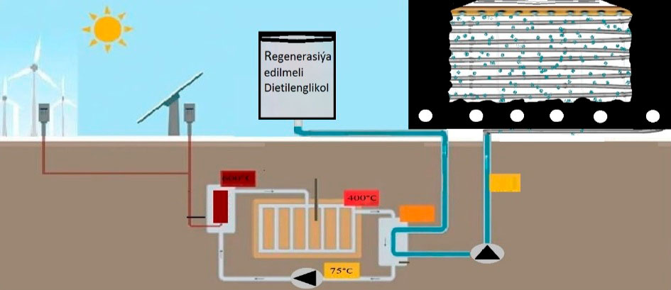 Innowasion tehnologiýa ýöriteleşdirilen beketlerden energiýanyň ulanylmagy arkaly goýy suwuklykly dietilenglikolyň ýuka gatlagyny döretmegiň geljegi uly usulyna esaslanandyr. Bu bolsa energiýa çykdajylary azaldýar, ýylylygyň azalmagynyň öňüni alýar hem-de daşky gurşawa ýaramaz täsiri peseldýär. Bu iş kömürturşy gazy we beýleki zyýanly maddalary bölüp çykarmaýar.