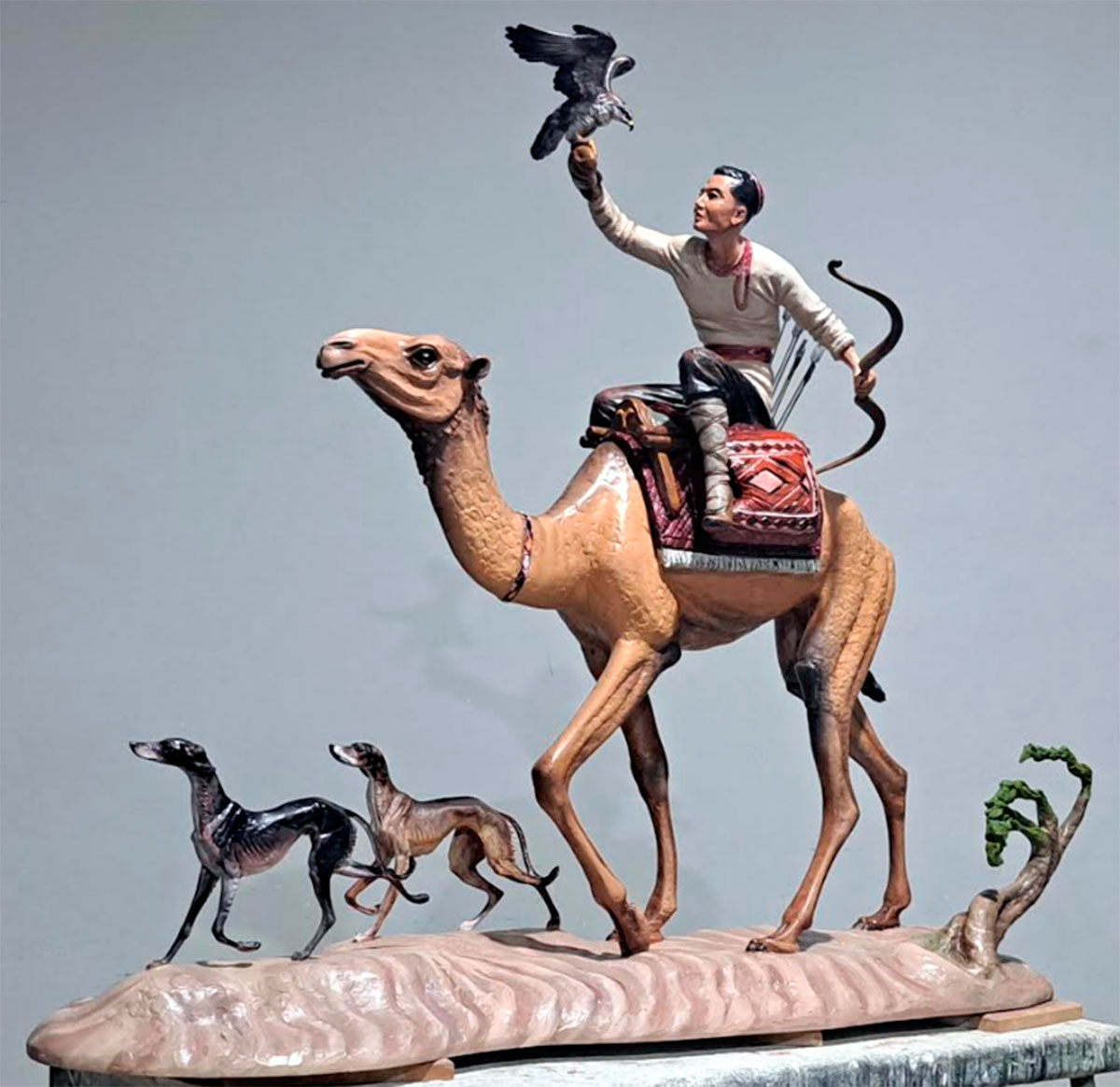 Awtoryň her bir zada uly üns berendigi duýulýar. Heýkeltaraş düýäniň gapdalyndan ylgap barýan syratly, inçe ýüňli, uzyn burunly we täsirli gözleri bolan tazylaryň keşplerini – «ikinji plandaky» şekilleri hem örän ynandyryjy we takyk suratlandyrypdyr.